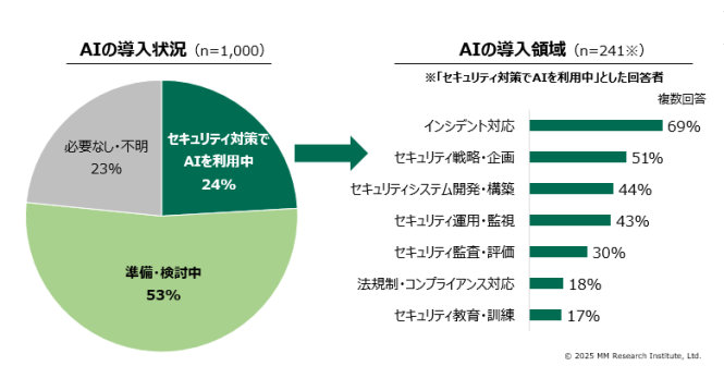 - 24%がセキュリティ対策でAIを導入、準備・検討中は53%