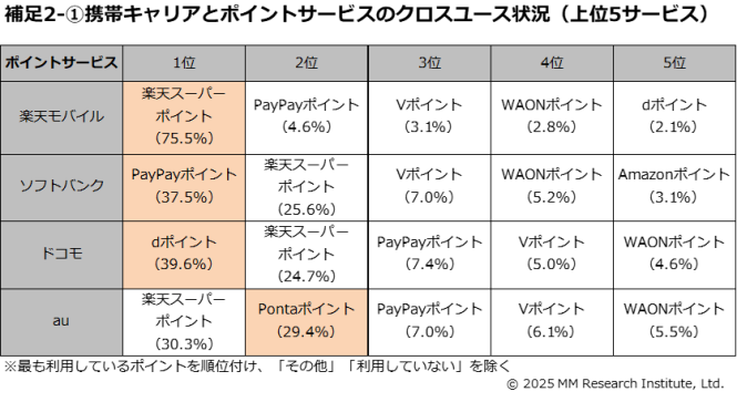 「ポイント/決済サービスの携帯キャリア別利用状況調査」(2025年8月時点)