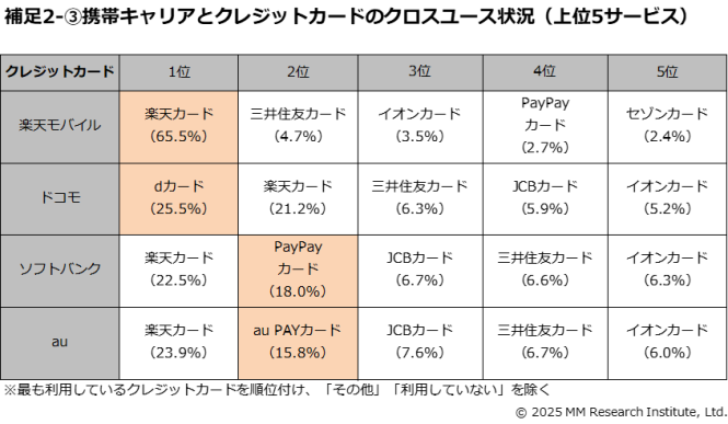 【補足2】携帯キャリアと各種サービスのクロスユース状況(上位5サービス)