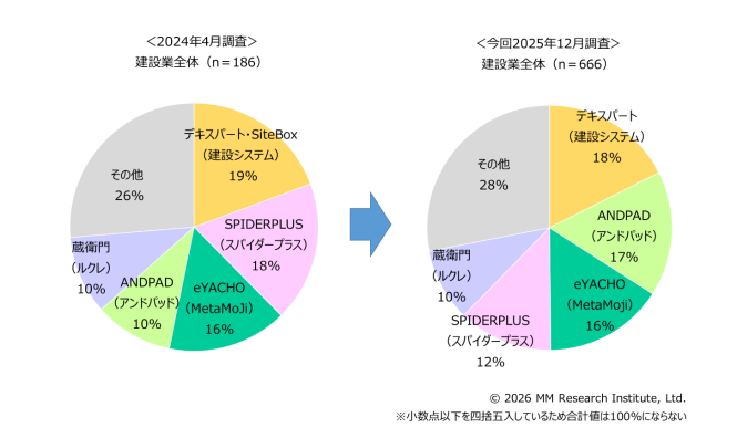11ポイントも上昇した - 事業者別シェアは建設業全体では建設システムの「デキスパート」が18%で1位、